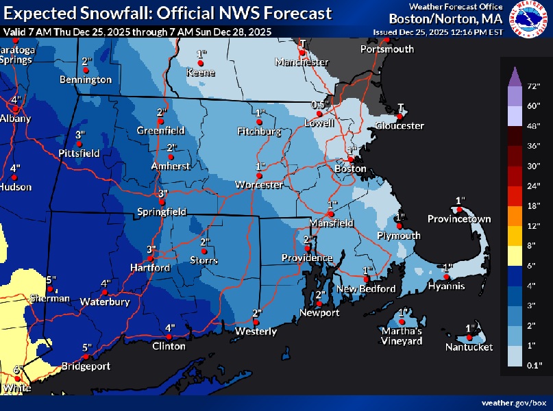 The forecasted snow totals in Massachusetts, Rhode Island, and Connecticut have increased. According to the National Weather Service, a Winter Weather Advisory has been issued from...