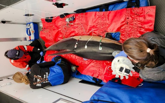 IFAW animal rescue veterinarian, Dr. Sarah Sharp, and the team conducted a full health assessment and analyzed blood work to help determine the best course of action to take.
