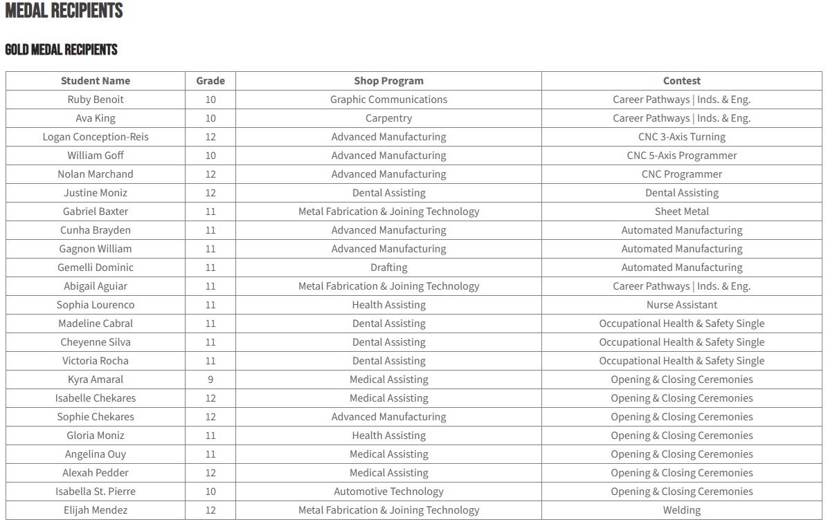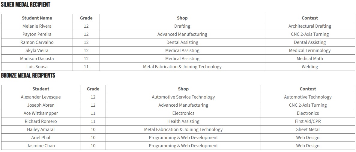Durfee and Diman students combine for nearly 50 medals at Massachusetts SkillsUSA State Championships in Marlborough