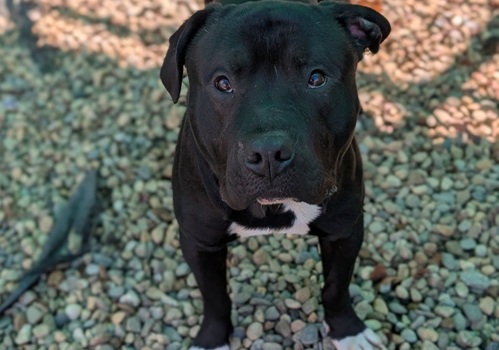 He’s a superstar when it comes to social interactions of all kinds. He loves people and he loves other dogs. His favorite toy in the whole world is a rope toy that he’s SUPPOSED to play tug with but he doesn’t understand the concept of tug and will just sit there wiggling with it in his mouth. If you try to play tug with him, he thinks you’re trying to take it and will just…let it go and look disappointed. He knows “sit”…sorta. It’s inconsistent. He’ll get there eventually.