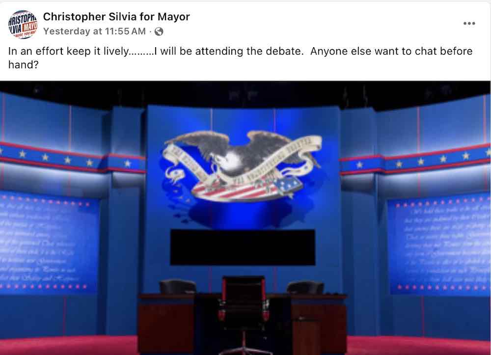 Also on Tuesday, candidate Silvia in a Facebook post indicated that he would now join the debate after pulling out last week.