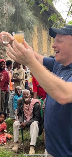 Hodson shared one of his favorite moments (photo above) where Pastor Wes is showing how simple the handheld gravity fed filter works to change water contaminated with cow dung and worms to potable water in seconds.