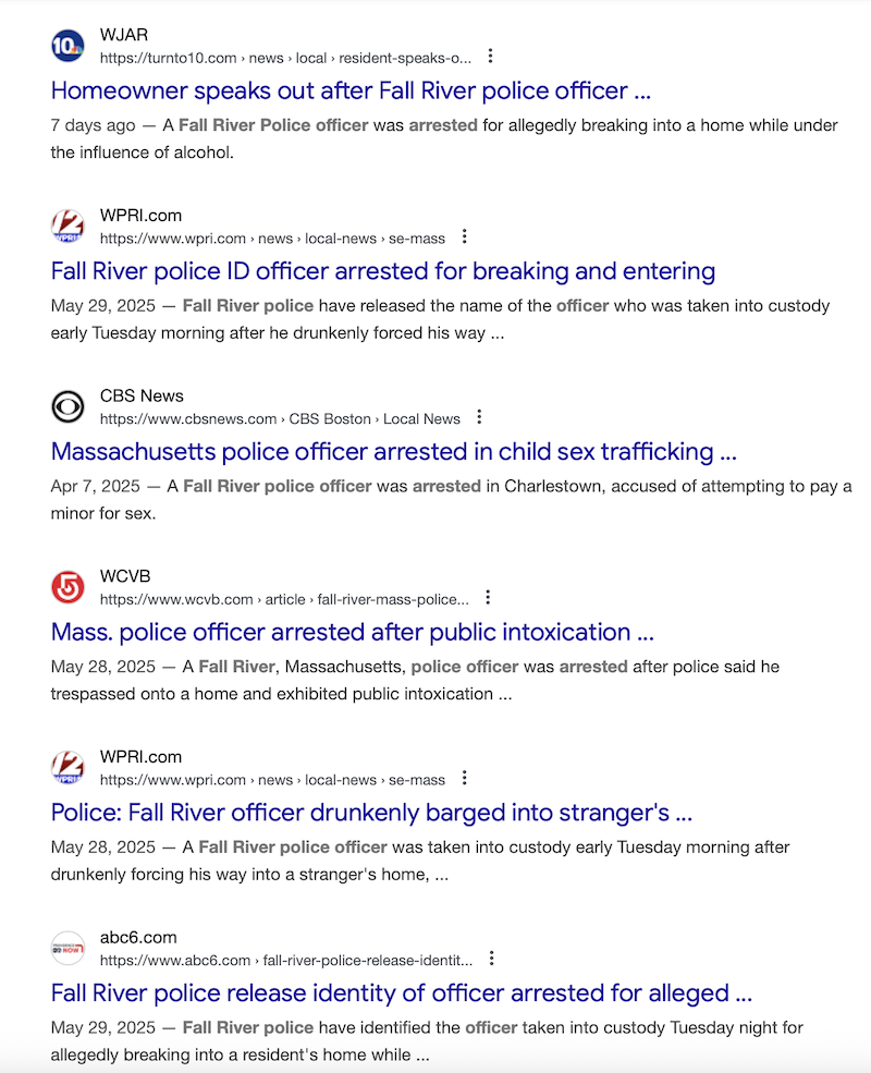 The Fall River Police Department sent out the information to the press, but excluded the Fall River Reporter. The City of Fall River and their police department has become so petty they now take any scoops I send to them and send the information to other news outlets. Here’s a screen capture of outlets reporting our scoop.