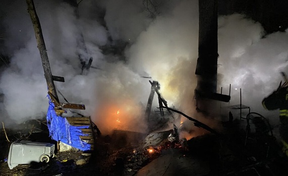 Makeshift structure being used as shelter destroyed by blaze in Attleboro; sends occupants to hospital