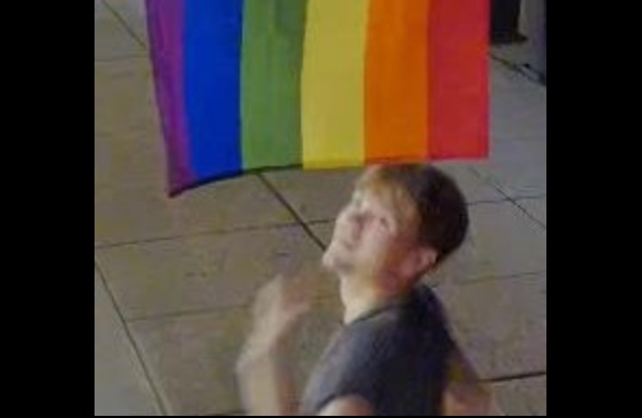 According to police, at just before 1:30 a.m. on June 19th, two individuals were captured on surveillance video stealing eight Pride flags from the exterior awning of Thornes Marketplace, located at 150 Main Street. The flags were then placed in the eastbound lane of Main Street and set on fire. A motorist stopped and extinguished the flames.