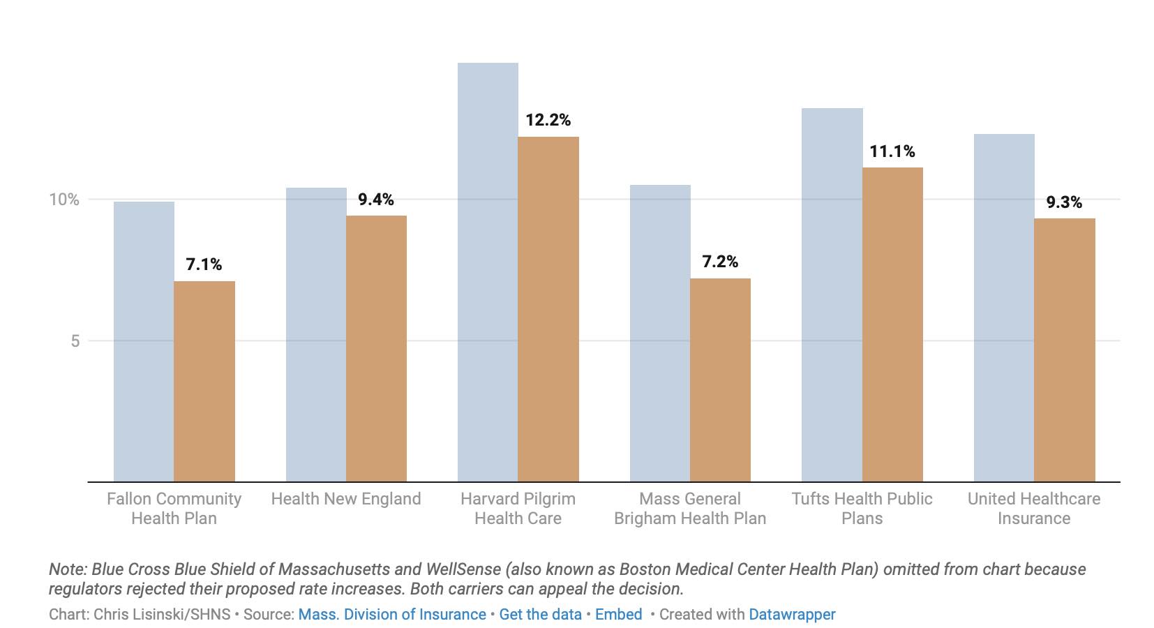 Officials reached similar conclusions about WellSense, also known as Boston Medical Center Health Plan, which proposed an average merged market rate increase of 16.2% for its more than 133,000 members.