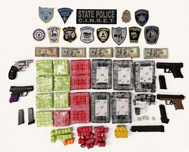 The following agencies took part in the operations: CINRET West Team, MSP Gang Unit, Crime Scene Services Section, Attorney General’s Office, State Police Detective Unit (SPDU) Hampden, State Police STOP Team, Springfield Police Firearms Investigation Unit (FIU), Troop B Community Action Team (CAT), Hampden County Sheriff’s Department, Drug Enforcement Administration (DEA), United States Postal Inspection Service, Homeland Security Investigations (HSI), and the Federal Bureau of Investigation (FBI).