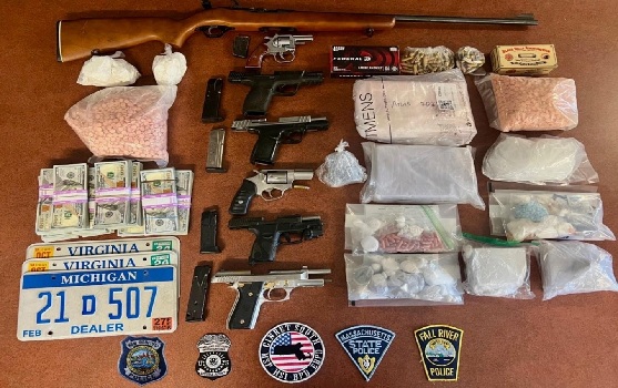 Massachusetts State Police arrest Fall River, New Bedford men, seize 7 firearms, 7 kilos of drugs, $100,000 in cash