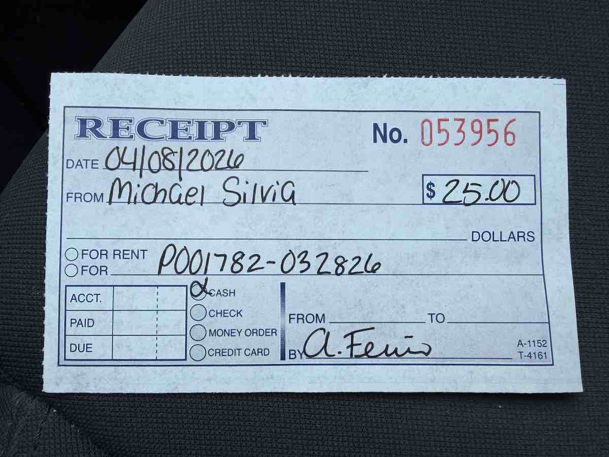 The next day I went down to the FRPD and paid the $25 cash. The clerk told me she would call upstairs to the folks that handle public records and let them know I made payment. Here is the receipt.