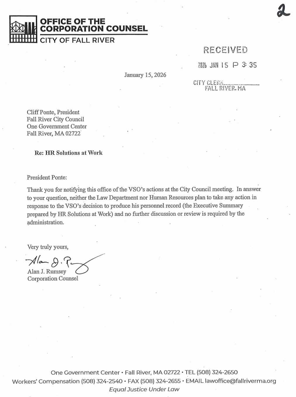 Finally, the City of Fall River’s Corporation Counsel Alan Rumsey sent a letter to City Council President Cliff Ponte basically stating the City is done with the issue.